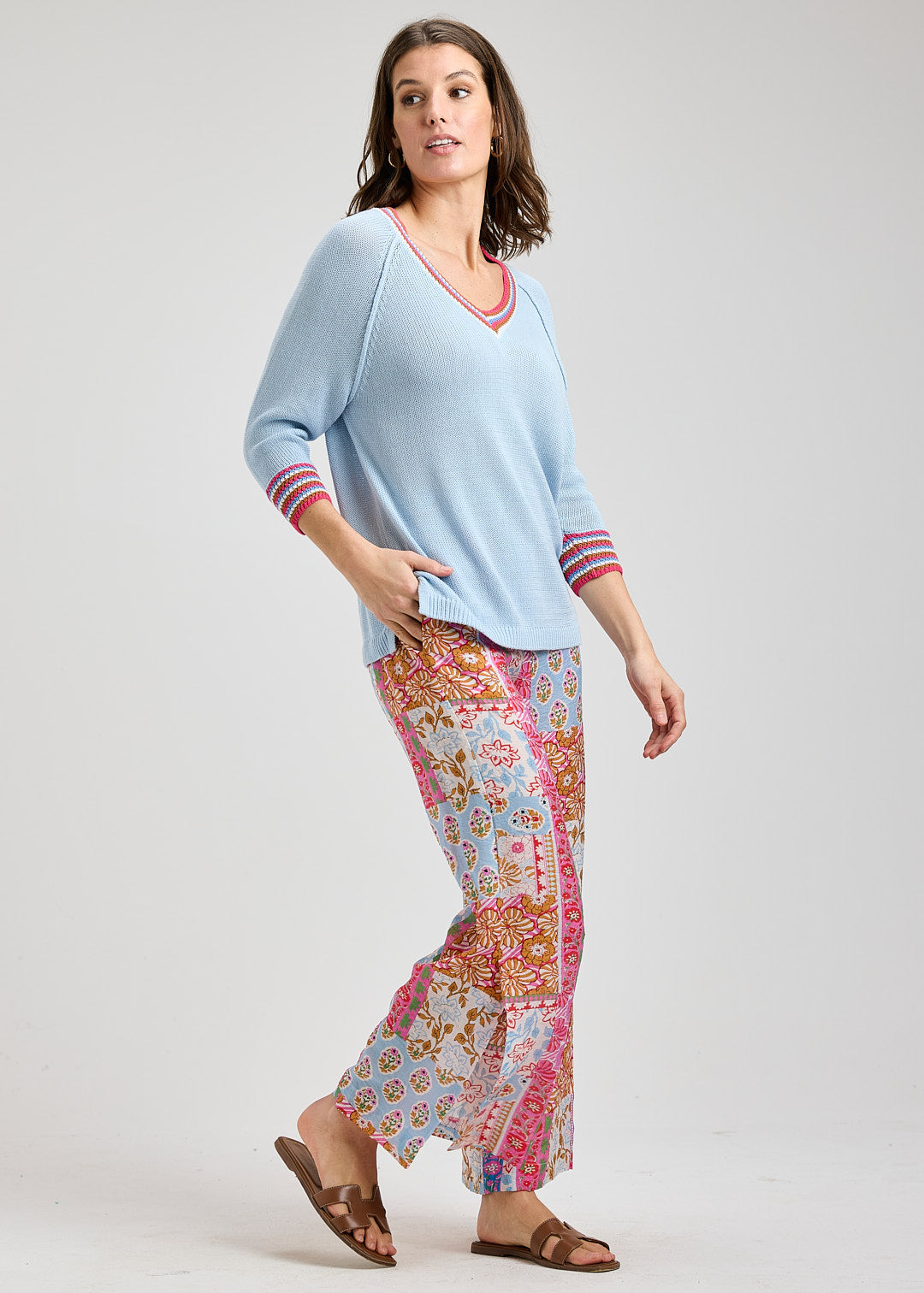 100% Cotton Sweater in a relaxed fit with a longer length and slip hem