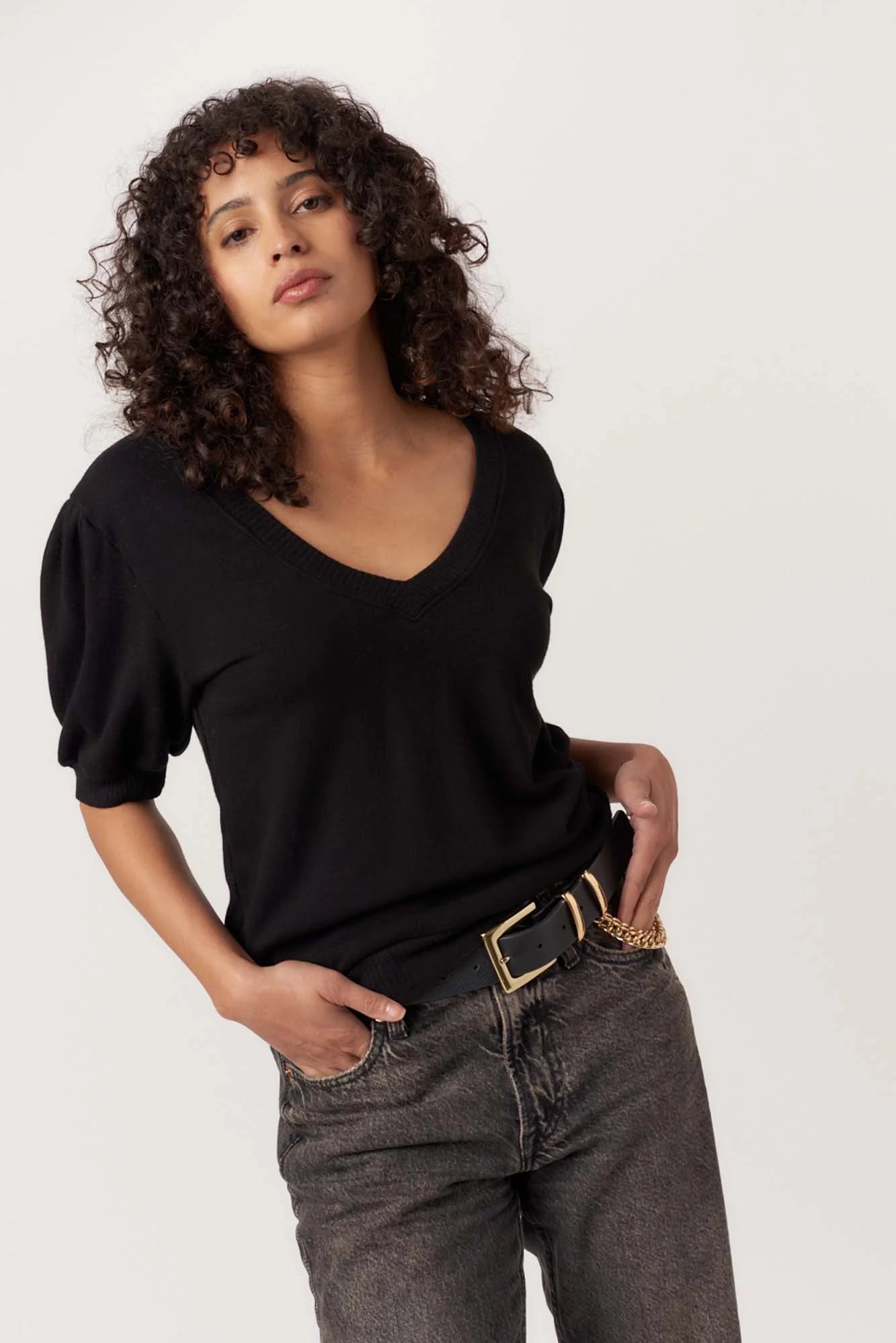 In My Feels Puff Sleeve V-Neck Pullover is made from a soft cotton-rayon blend that balances comfort with polish. Designed with a flattering V neckline and puff sleeves, it creates an elegant silhouette that’s both cozy and refined. Finished with subtle ribbed trim at the hem and cuffs, it’s an easy layer that feels effortless yet elevated.