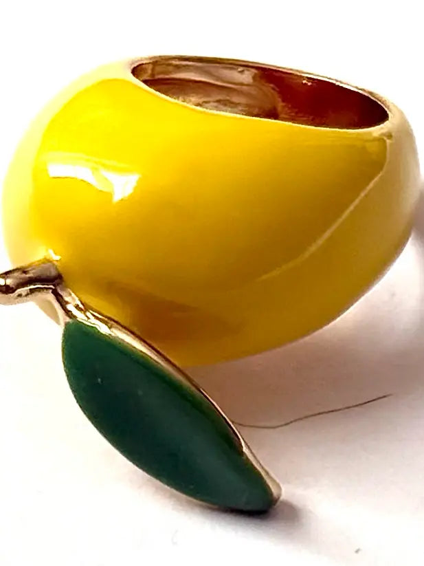 Fruit Basket is Fun and colourful and Whimsy. These are statement rings. Large profile- like our Dome. Tapered Band. Hand Enamelled and Gold plated and Electro Plated to avoid Tarnish. Not Waterproof. But very long lasting.