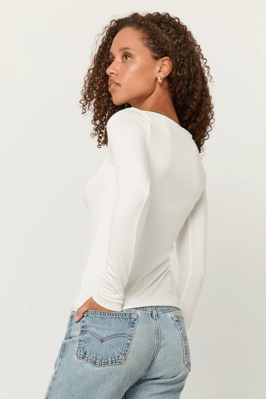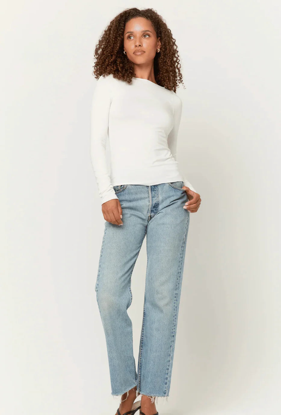 The Vera Boat Neck Long Sleeve features a flattering boat neckline and a buttery soft jersey fabric that hugs you just right. With delicate hemline stitching and a fitted silhouette, this long sleeve is as versatile as it is comfortable. Whether you're dressing it up with trousers or going casual with jeans or a midi skirt, this top’s got you covered.